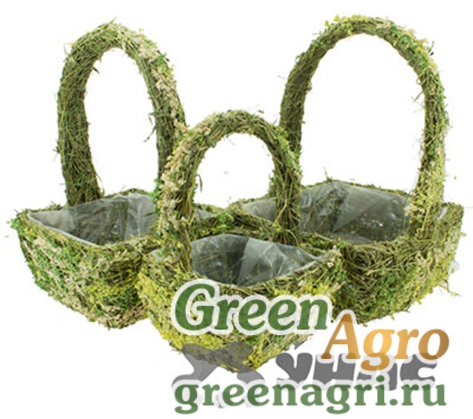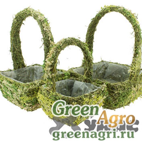 Кашпо 14/20SDС из растительного материала набор 3шт корзинки круглые с высокими ручками (24)
