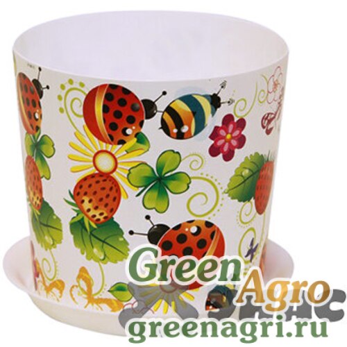 Кашпо ДЕКО 160мм 2,4л с подставкой божьи коровки М3106 х36
