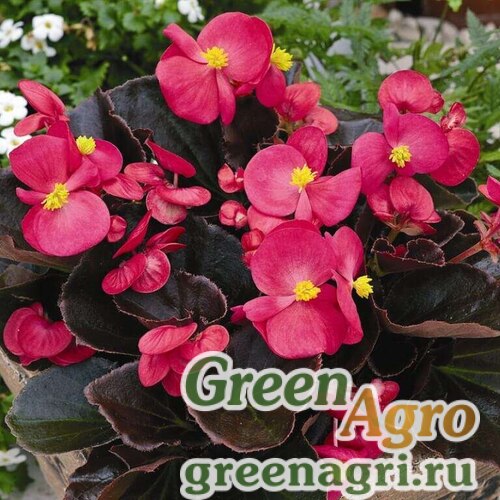 F1 Cocktail Бронзоволистные бегонии, устойчивые к жаре. Тёмные листья и ярко-красные цветки.