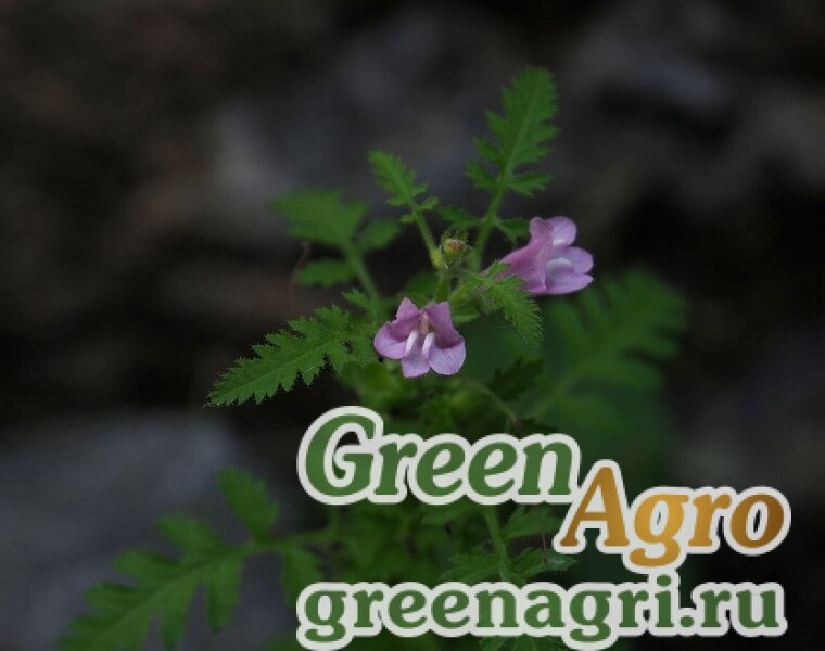 Однолетник или двулетник. Все растение железисто-пушистое. Стебель 7-80 см высотой, одиночный, ветвистый, с косо восходящими или слегка прижатыми веточками или простой, опушенный. Листья 1-5 см длиной, 9,5-5 см шириной, яйцевидно-треугольные, в нижней части перисто-раздельные, в средней части пластинка листа перисто-надрезанная, последующие лопасти к верхушке постепенно сближенные и сросшиеся и переходящие в перисто-зубчатую верхушку. Доли листьев овальные или ланцетные, неровно 2-зубчатые, нижние слегка неравнобокие (зубцы более крупные по нижнему краю долей), нижняя пара долей нижних листьев 14-25 мм длиной и 7-12 мм шириной, с черешками 2-4 мм длиной. Цветки расположены на концах веточек в пазухах верхних листьев. Чашечка 5-13 мм длиной, колокольчатая, надрезанная до середины или более на 5, редко на 6, несколько неравных, продолговатых, в верхней половине перисто-зубчатых долей, с 2-5 зубчиками с каждой стороны, ребристая, с беловатой трубкой. Венчик розовый, в зеве с двумя желтыми пятнами, в 2-3 раза длиннее чашечки, трубка вздутая, 7-10 мм шириной, отгиб короткий, в 5-6 раз короче трубки, верхняя губа коротко и широко 2-лопастная, три лопасти нижней губы продолговато-округлые, 3-4 мм длиной и 2,5-3 мм шириной, снаружи венчик опушенный, внутри коротко волосистый. Коробочка 7-13 мм длиной, 3-7 мм шириной, сплюснутая, продолговато-яйцевидная, наверху суженная и оттянутая в клювик, отогнутый в сторону.